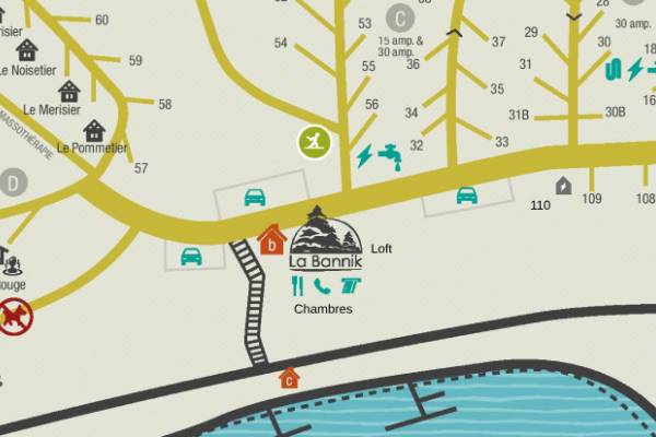 | Une borne de recharge universelle est disponible pour nos clients du bistro ainsi que pour les chalets. La borne est disponible dans le stationnement de la réception. | ![]() |