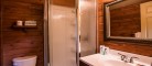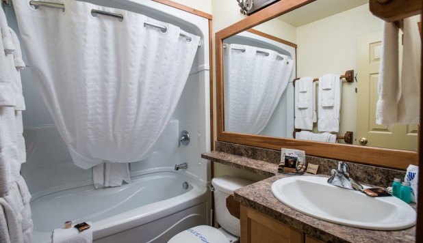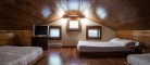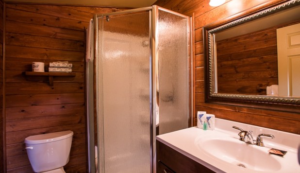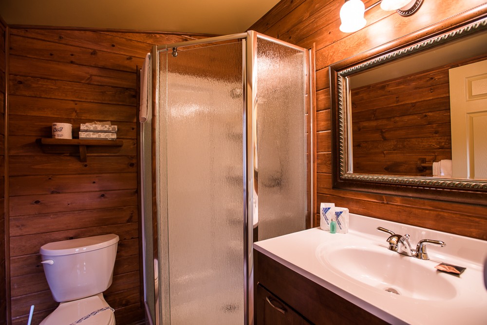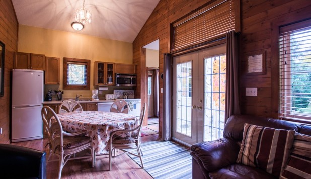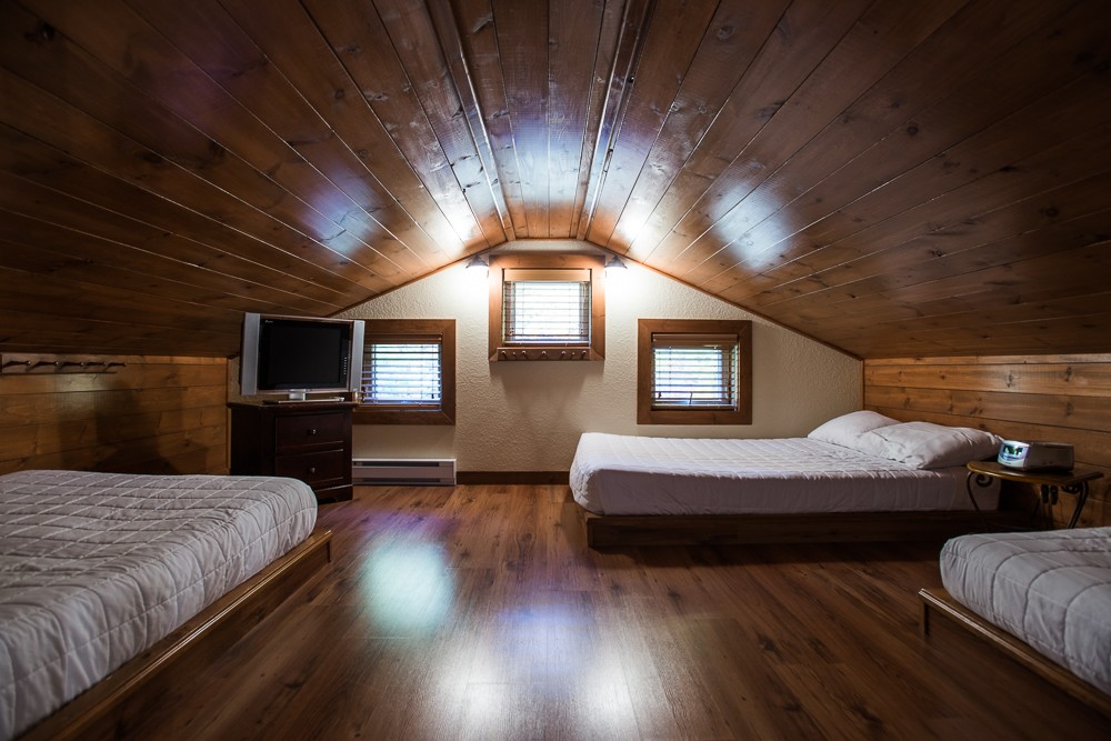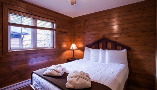 Conçu sur deux étages, ce chalet peut accueillir un maximum de 7 personnes. Au premier plancher, on retrouve deux chambres à coucher, chacune munie d’un lit Queen. Le deuxième étage est une mezzanine (hauteur restreinte) sur laquelle on retrouve deux lits 48 pouces et un lit 39 pouces. La cuisine est équipée d’un réfrigérateur, une cuisinière, un lave-vaisselle, un four micro-onde, une cafetière, un grille-pain et un service de vaisselle complet. Au salon, on retrouve un foyer au propane, un module d'air climatisé, une télévision écran plat avec satellite et un lecteur DVD. Le chalet comprend une salle de bain complète et une salle d’eau. À l’extérieur, on retrouve un barbecue, un emplacement pour feu de camp, ainsi qu’un spa privé couvert.