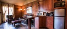Ce chalet peut accueillir un maximum de deux adultes et deux enfants. La chambre est fermée. On y retrouve un lit Queen, un bain détente pour deux personnes, un coin coiffure, une douche et un cabinet de toilette. Au salon se trouve un foyer au propane, un divan-lit de 54 pouces, un module d'air climatisé, une télévision écran plat avec satellite et un lecteur DVD. L’aire de cuisine est composée d’un comptoir lunch, un réfrigérateur, un four micro-onde, une plaque de cuisson électrique à deux foyers, une cafetière, un four grille-pain, un grille-pain régulier et un service de vaisselle complet pour quatre. À l’extérieur, on retrouve un barbecue, une table à pique-nique, un emplacement pour feu de camp ainsi qu’un spa privé. Du chalet, vous avez accès au wi-fi.
