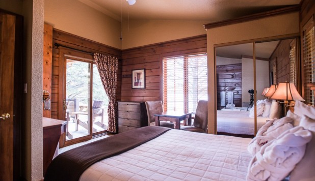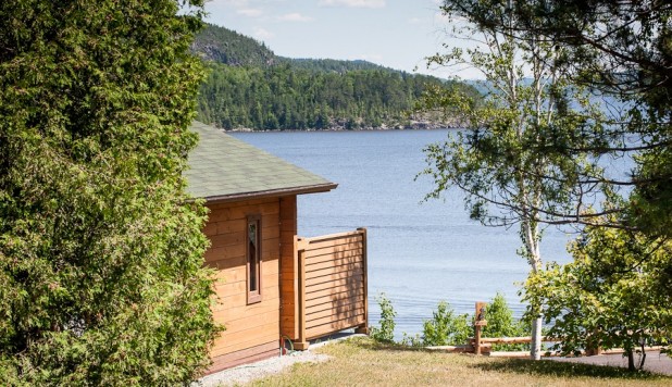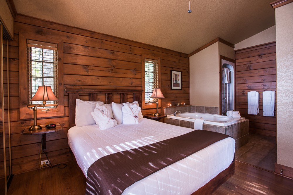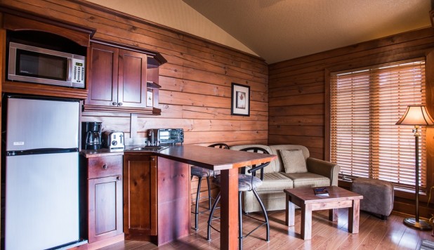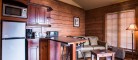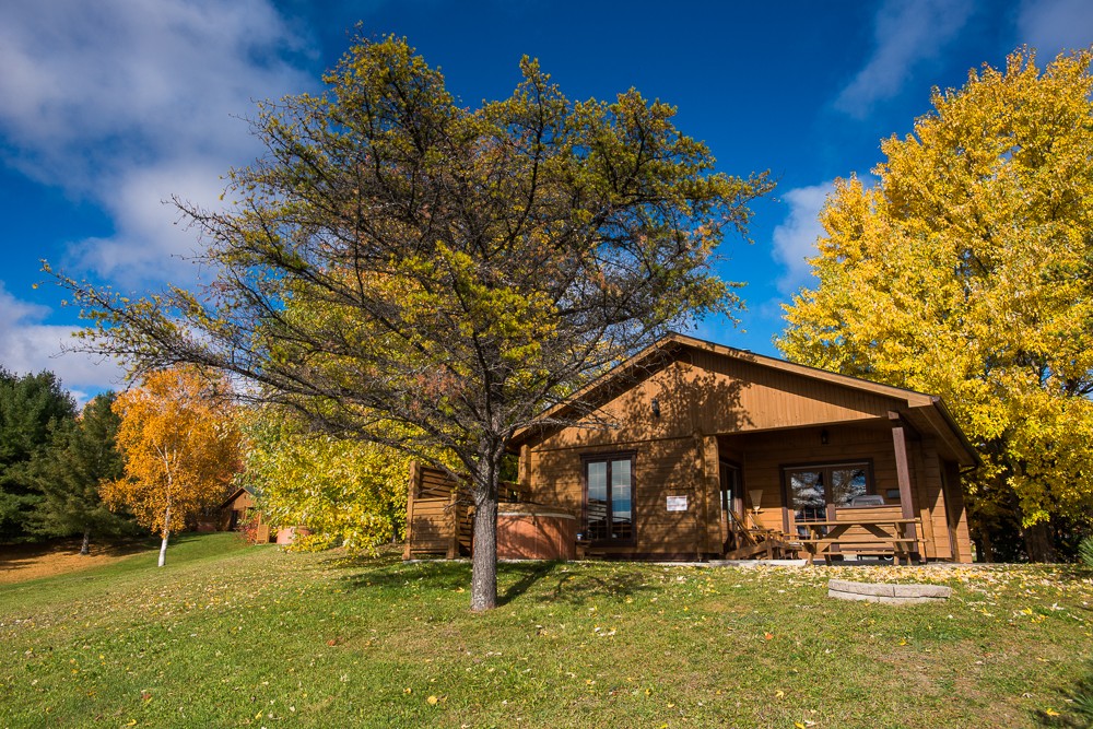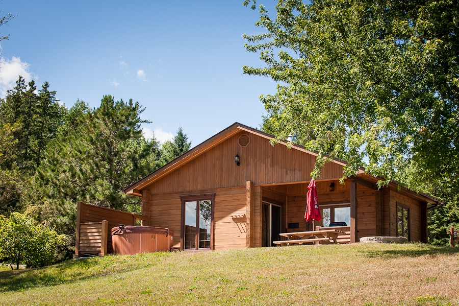 Ce chalet peut accueillir un maximum de deux adultes et un enfant. La chambre est fermée. On y retrouve un lit Queen, un bain détente pour deux personnes, un coin coiffure, une douche et un cabinet de toilette. Au salon se trouve un foyer au propane, un divan-lit de 39 pouces, un module d'air climatisé, une télévision écran plat avec satellite et un lecteur DVD. L’aire de cuisine est composée d’un comptoir lunch, un réfrigérateur, un four micro-onde, une plaque de cuisson électrique à deux foyers, une cafetière, un four grille-pain, un grille-pain régulier et un service de vaisselle complet pour trois. À l’extérieur, on retrouve un barbecue, une table à pique-nique, un emplacement pour feu de camp ainsi qu’un spa privé. Du chalet, vous avez accès au wi-fi.