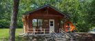 This two-story cottage can accommodate a maximum of 7 people. On the first floor, there are two bedrooms, each with a Queen-sized bed. The second floor is a loft with a low ceiling. It has two 48" beds and a 39" bed. The kitchen has dishes and cutlery, a refrigerator, an oven, a dishwasher, a microwave, a coffee maker, and a toaster. In the living room, there is a propane fireplace, an air conditioning unit, and a flatscreen TV with satellite receiver and DVD player. There is one full bathroom and one bathroom (shower only). Outside, there is a barbecue, a fire pit, and a private hot tub under a roof.