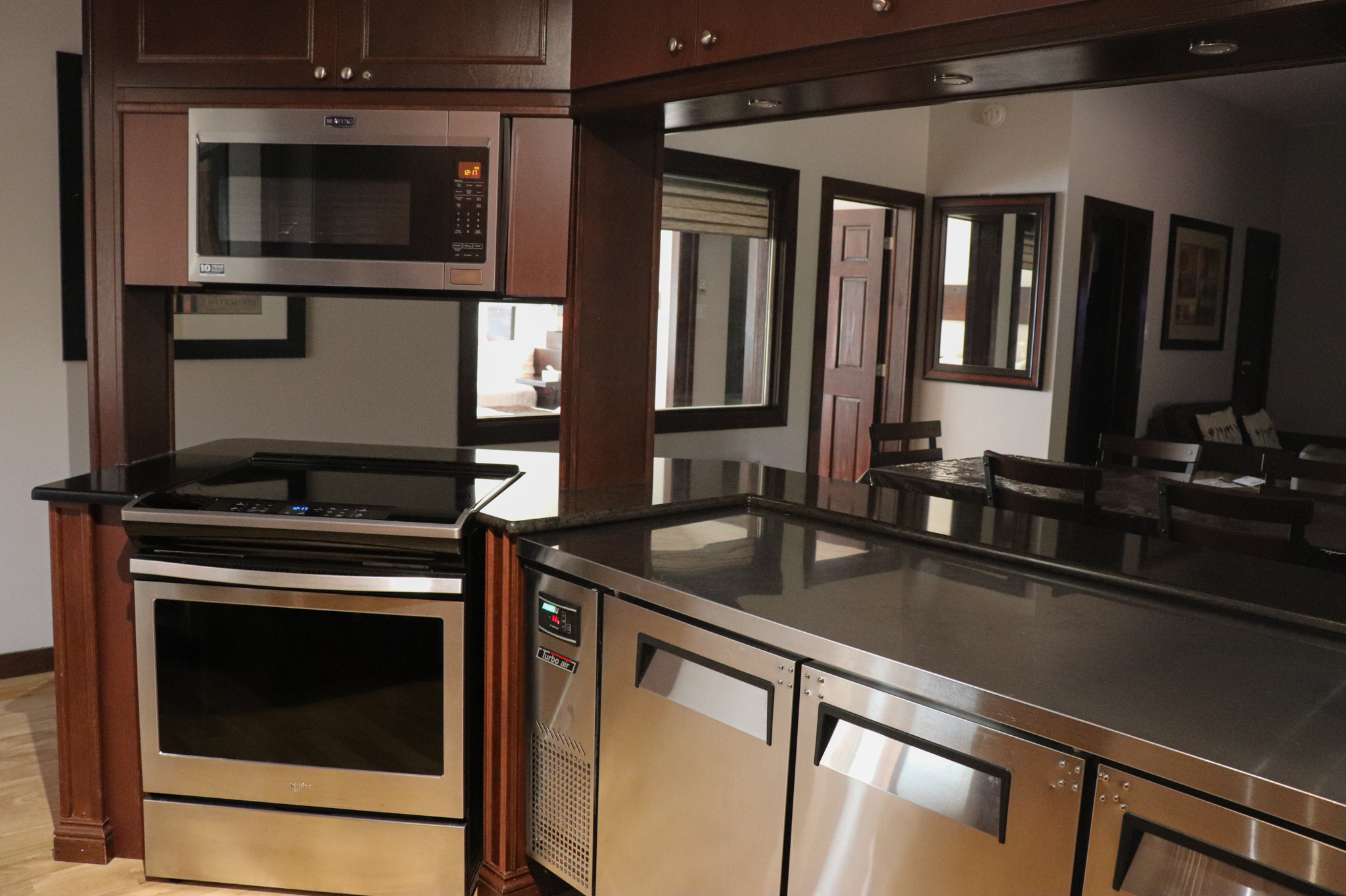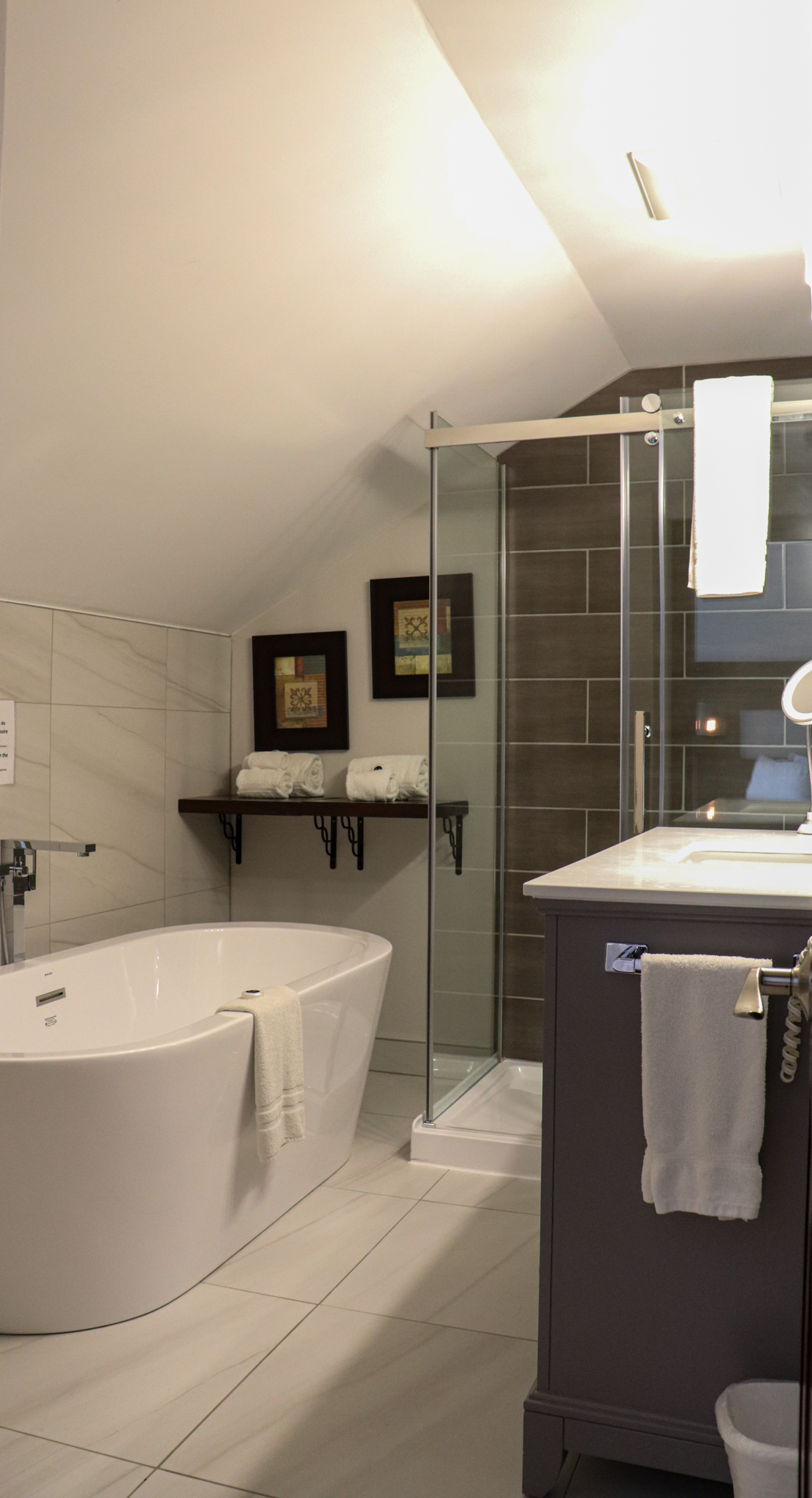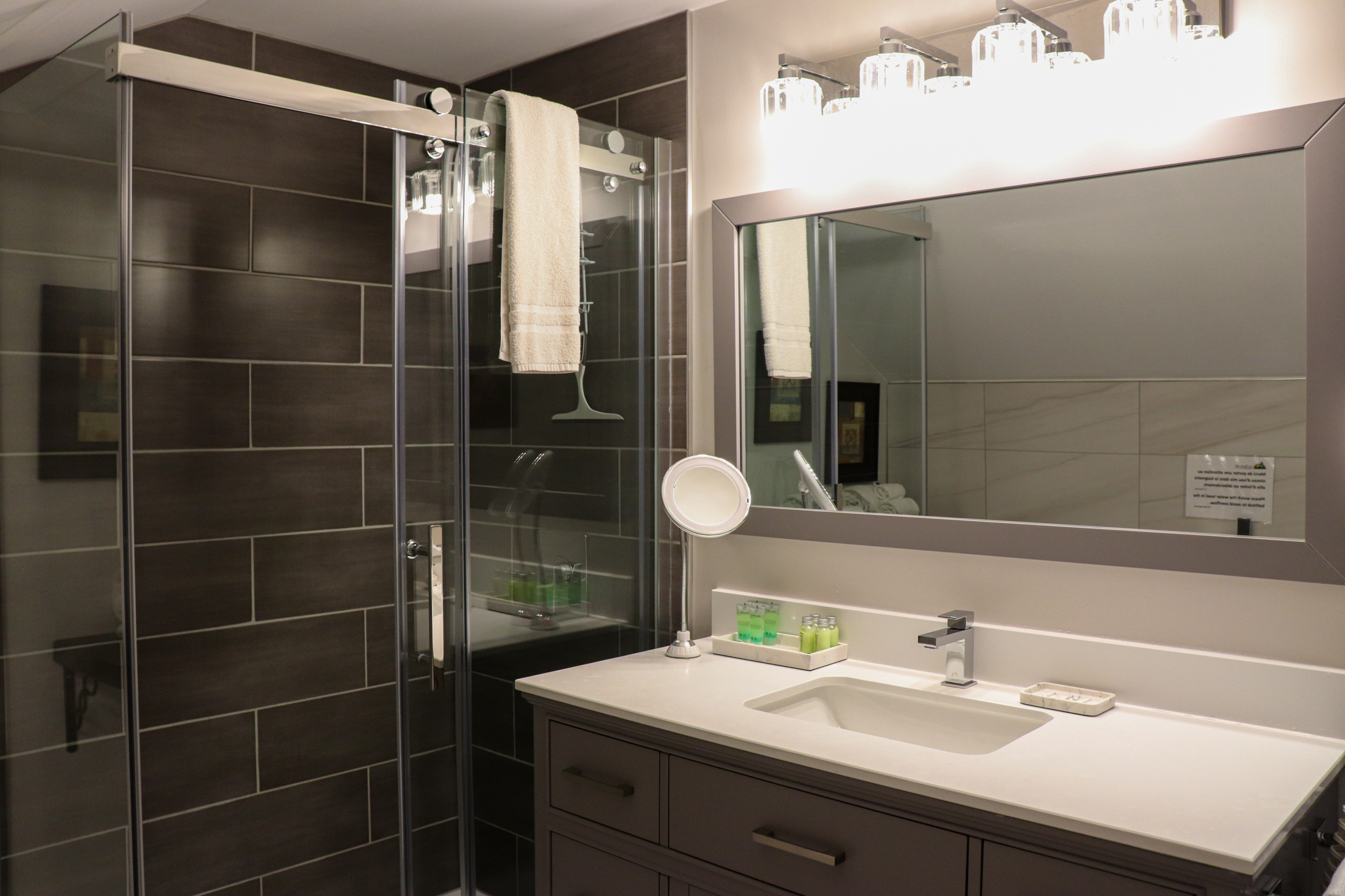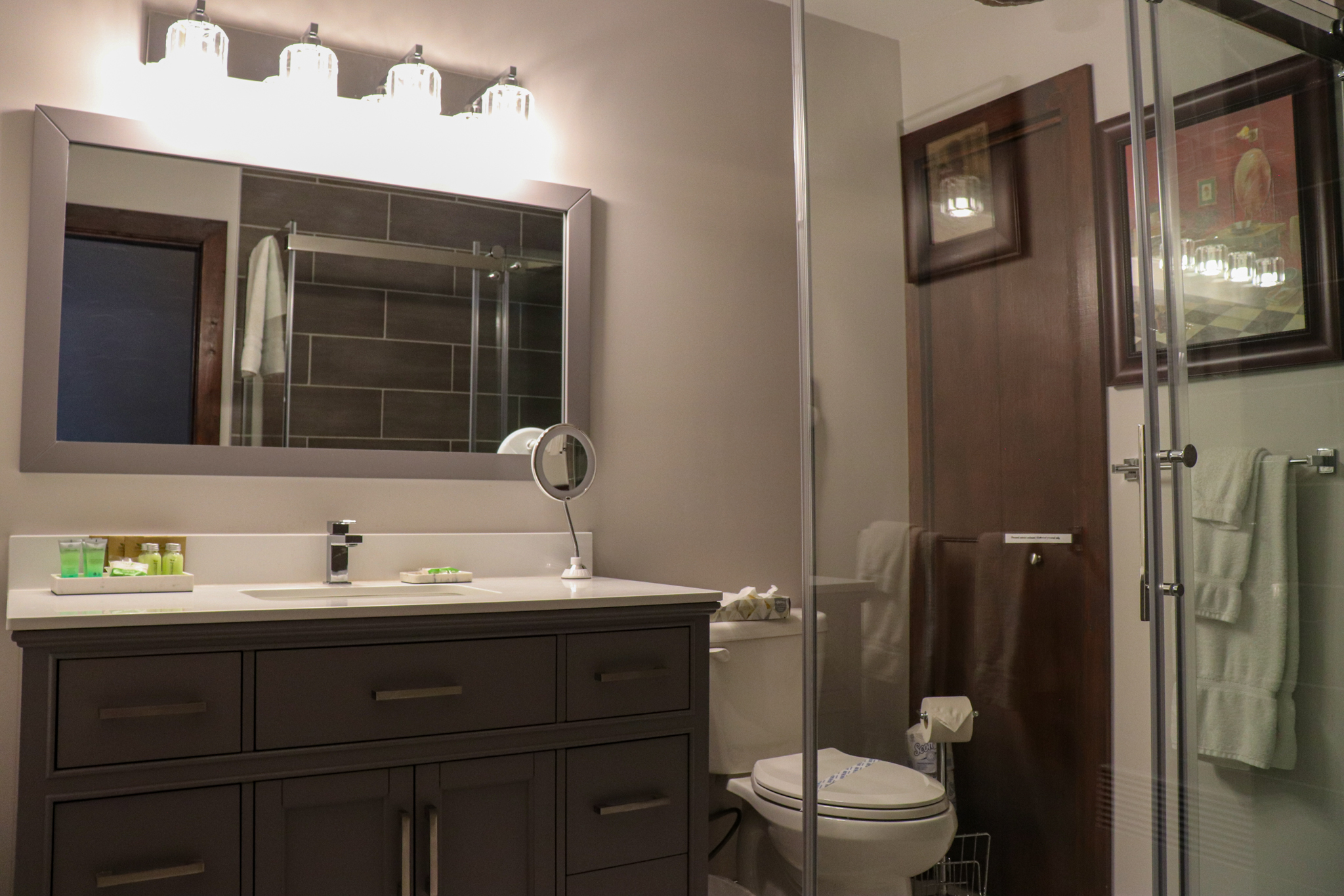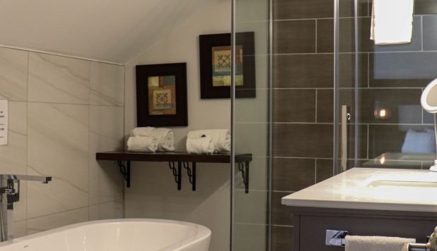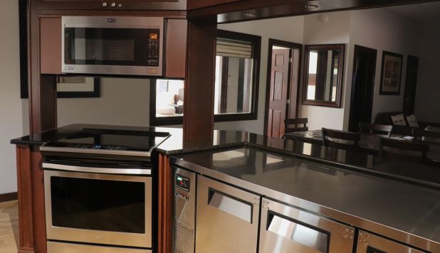 This cottage can accommodate a maximum of 8 people. There are two bedrooms, each with a Queen-sized bed and one with two Queen-sized bed. The kitchen has dishes and cutlery, a refrigerator, an oven, a dishwasher, a microwave, a coffee maker, and a toaster. In the living room, there is a propane fireplace, an air conditioning unit, and a flatscreen TV with satellite receiver and DVD player. There is one full bathroom and one bathroom (shower only). Outside, there is a barbecue, a fire (propane), and a private hot tub under a roof.